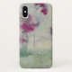 Fuchsia Treeline I par Jennifer Goldberger. Représentation Abstraite de formes de fuschia arborées contre un arrière - plan muet, faite dans un style de peinture.