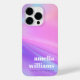Modern, trendy iPhone case featuring a pink and purple gradient with template fields for your name and custom text.