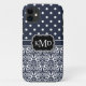 Coques Case-Mate iPhone Trio Monogramme Navy Damask