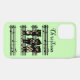 Ce coque iphone est vert clair avec trois musiciens de chat noir qui jouent leurs instruments tout en se tenant sur des partitions noires. Customisez votre nom avec le modèle.