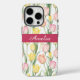 Les tulipes jaunes pastel et roses à l'aquarelle font un beau coque iphone printanier. Parfait pour tous ceux qui aiment les fleurs. Personnalisez avec votre nom dans un groupe rose foncé.