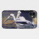 Sur la photo originale de MaeFlowers sur ce Coque iPhone 11, on voit deux pélicans Brown dans l'eau d'un canal. L'oiseau au premier plan décolle, sa tête s'étire vers l'extérieur, ses ailes s'estompent sur les côtés, et ses pieds s'allongent vers l'arrière en faisant éclabousser l'eau. Le second pélican, toujours assis dans l'eau, semble dire au premier oiseau, Allez-y ! L'arrière - plan de la photo montre le mur du canal en haut, reflété dans les tons de brun doré sur l'eau, se mélangeant en vert et bleu avec un reflet du pélican volant dans les ondulations. Ces oiseaux sauvages sont à l'exploration.