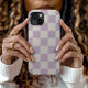 Boho tendance damier imprimé boîtier de téléphone en lavande poussiéreuse violet et ivoire couleurs. Utilisez les outils de conception pour ajouter votre propre monogramme, nom ou autre texte, ou changer la couleur arrière - plan pour créer une couverture de périphérique unique d'un type particulier.