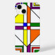 Ce boîtier téléphonique a un design Bauhaus de lignes, triangles, diamants et carrés faisant un look de vitrail dans les couleurs primaires et secondaires.