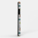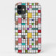 Ce boîtier téléphonique a un design moderne du milieu du siècle d'une grille de lignes noires avec des carrés et des rectangles aux couleurs rétro sur un champ de blanc.