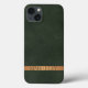 Coque iphone élégant et élégant, tendance vert émeraude foncé, avec nom en or métallique cuivre, bande personnalisée.