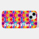 Boîtier téléphonique cool avec un arrière - plan de teinture rétro coloré avec du texte "super vibes" hippie personnalisable.