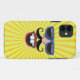 Moustache avec lunettes de soleil sur fond d'éclatement de soleil.