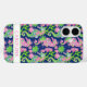 Customize this colorful navy blue, kelly green, and pink watercolor seahorses iPhone 16 case with your your name in a trendy modern CAP font in pink on white. It's so modern and trendy!
