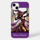 Coque iphone avec sorcière méchante, teintes dorées violettes dans "motif Art Déco" pour vous avec des vibrations éffrayantes. Parfait comme cadeau pour Halloween, Noël, Anniversaire, Thanksgiving et plus. Le texte "Witch Please" est personnalisable. Ajoutez votre propre citation ou mots avec les outils fournis par Zazzle. Conçu par © Designer Artist, www.zazzle.com/store/electronics_gallery