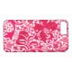 Boîtier de téléphone dans un vintage imprimé fleuri William Morris de lys stylisés et d'Irises, numériquement rehaussés et colorés, dans les tons clairs à rose fuchsia profond et vin rouge profond sur un arrière - plan blanc