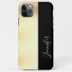 Personnalisez votre nom en écriture blanche sur une bande noire avec arrière - plan or jaune pour un look contemporain et dynamique. Un style moderne qui habillera parfaitement votre étui de téléphone. Fait un grand cadeau.