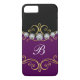 La caisse chique de smartphone de monogramme décorée d'une belle conception florale de flourish, les fausses pierres simulées de diamant a numériquement imprimé sur la couverture de portable dans un exemple typique de faux bling. Une conception élégante qui vous laisse porter votre portable dans le style.