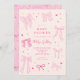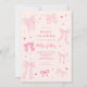 Carte d'invitation baby shower mignonne et coquette illustrant des arcs et des coeurs roses.