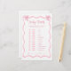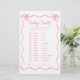 Célébrez votre thème de baby shower arc rose avec cet adorable jeu Personnalisé Pink Bow Coquette Baby shower Baby Traits ! Ajoutant une touche de douceur à votre thème de baby shower de coquette, ce jeu rassemble les invités pour deviner les traits du bébé. Parfait pour des idées de baby shower rose ou un baby shower arc, ce jeu de baby shower ajoute charme et élégance à toute célébration bow party!