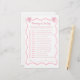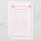 Ajoutez du charme à votre thème de baby shower coquette avec ce jeu de baby shower à arc rose personnalisé. Parfait pour des idées uniques de jeu de baby shower, ce jeu "Guess Who" apporte une touche amusante à votre célébration. Doté d'un adorable design arc rose, il complète n'importe quel thème de baby shower arc ou de baby shower arc rose. Cette activité engageante est idéale pour les idées de baby shower rose et fait un ajout mémorable à toute partie arc, créant des souvenirs durables pour tous vos invités.