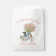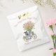 Ces serviettes présentent un portrait aquarelle d'un mignon petit chiot assis sur un vélo avec un grand bouquet de fleurs roses et des arcs bleus et blancs.