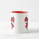 This festive ceramic mug features a bright red interior and handle, complemented by a large red bow design on the front. The bow has soft, white fur-trimmed edges and a gold buckle detail, giving it a cheerful holiday look that’s perfect for seasonal sipping.