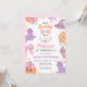 Éffrayant rencontre sucré dans cette adorable invitation du 2ème anniversaire ! Parfait pour fêter le 2ème anniversaire de votre petit, ce design est un mélange magique de plaisir Halloween et de charme princesse. L'invitation est remplie de personnages mignons comme un fantôme souriant avec un arc rose, d'adorables chatons violets et de charmants citrouilles, tous habillés pour l'occasion dans des pastels doux de violet, rose et orange.