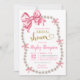 Coquette Pink Bow Pearls Bridal Show Invitation