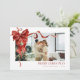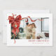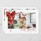 Souhaitez à votre famille et à vos amis un joyeux Noël avec une carte de Noël personnalisée do-it-yourself arc rouge de Noël avec une photo de votre famille sur le devant enveloppé comme un cadeau de Noël dans un arc rouge, et un côté arrière avec 3 photos de famille et une note modifiable dans une orientation horizontale. Ces cartes photo de Noël modifiables sont une façon parfaite de partager la joie des fêtes et une joyeuse saison des fêtes. La collection MATTEA présente une photo de votre famille enveloppée comme un cadeau de Noël avec des rubans rouges de Noël aquarelle et un arc rouge sur le devant avec un message MERRY CHRISTMAS dans une serif décorative fantaisie en rouge et le nom de votre famille et l'année dans une police serif classique en rouge. Un côté arrière optionnel est inclus avec trois photos de famille et une note, ainsi que le même arc cadeau de Noël rouge. Des rubans rouges de Noël et un grand arc ornent une carte de vacances photo qui met en valeur votre photo de famille.