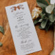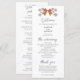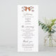 Programme de coquette et de mariage rustique avec illustration dessinée à la main des arcs et fleurs marron en terre cuite. Toutes les informations sur la cérémonie du mariage et le nom de la fête de mariage indiqué sur ce programme.