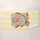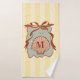 Mélange ludique de charme côtier et d'allure vintage, ce design rayé présente un monogramme en coquille de pétoncle encadré de rubans blancs et d'accents de bulles. Les tons jaunes doux et les illustrations d'inspiration marine lui confèrent une atmosphère de bord de mer nostalgique, idéale pour personnaliser n'importe quelle maison de plage ou collection d'amoureux de l'océan.