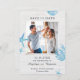 Cette tendance Save the Date a un thème nautique ou de plage. Il dispose d'un arrière - plan en bois blanc pour un look rustique. Le dessin à l'aquarelle de coquillages, d'étoiles de mer et de corail décorent le décor. Une photo du couple est au centre. Cette carte est parfaite pour un mariage à la plage, un mariage d'été, un mariage rustique ou un mariage de destination. L'aspect est frais, aéré et cosy.