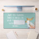 matelas de bureau à thème de plage avec personnalisable "pouvez-vous toujours avoir une coquille dans votre poche et sable dans vos chaussures" texte en script moderne police blanche, arrière - plan bleu et aquarelle message dans une bouteille vie marine graphique