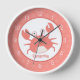 Cette horloge présente notre mignon crabe corallien avec une bordure corallienne (pêche) plus profonde et un arrière - plan corallien avec des nombres blancs. Ajoutez un nom, si vous le souhaitez. © Art de Jess