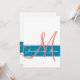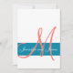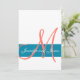 Coral et bleu Faire-part de mariage moderne avec votre monogramme et noms dans un design simple, mais élégant. ELKE CLARKE © pour Monogram Gallery. (Code couleur hexadécimal 0086a7). Montré sur le papier blanc de base. Autres combinaisons de couleurs disponibles sur demande