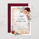 Carte RSVP Bourgogne Pêche Orange Brûlée avec un élégant bouquet de fleurs de roses de couleur bourgogne, rouge, Marsala, marron, pêche, saumon, corail et rose blush et feuilles d'eucalyptus vert sauge. Et texture de parchemin aquarelle grunge vintage. Veuillez me contacter pour toute aide de personnalisation ou si vous avez besoin d'un autre produit avec ce design.