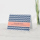 Anniversaire de la fête de remerciement cartes en élégante pêche rose orange, bleu marine foncé et blanc fun et vintage chevron zigzags raypes motif, la façon parfaite de remercier vos invités de fête d'anniversaire. Disponible dans de nombreux produits d'anniversaire correspondants.