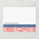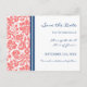 Mariage enregistrer la date faire-part cartes postales en élégant et contemporain pêche rose orange, bleu marine foncé, et blanc classique et vintage motif floral damask, élégant et entièrement personnalisable avec vos détails mariages. Aussi disponible dans de nombreux autres produits pour la fête de mariage.