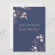 Invitations personnalisées de douches pour bébés dans un élégant et moderne rose pêche, bleu marine foncé et blanc vintage fleuris japonais motif fleuris. Personnalisable avec votre texte, contactez-nous pour demander un changement de couleur.