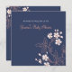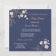 Invitations de douche bébé personnalisées dans élégant et moderne rose pêche, bleu marine foncé et blanc vintage japonais fleurs florales motif. Personnalisable avec votre texte, contactez-nous pour demander un changement de couleur.