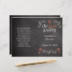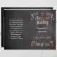 Pêche de corail frais et texte de tableau noir blanc avec un arrière - plan gris ardoise. Célébrez une cérémonie au bord de la mer avec ce palmier cool et un look craie blanc dessiné. Jolie atmosphère rustique vintage lors d'un mariage sur la plage. Copyright de conception © CustomInvitesOnline.com