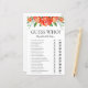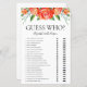 Cette belle feuille de jeu de douche de corail roses Qui? nuptiale est élégant et charmant - parfait pour tout jardin, botanique, rustique, romantique, floral, formel ou vintage mariage. Son magnifique mélange de gracieuses fleurs de corail multicolores et de verdure savoureuse est fleuri, délicat et beau. Ce jeu amusant et facile est sûr d'apporter beaucoup de rire à toute douche nuptiale. Donnez simplement un drap à chaque invité (n'oubliez pas les stylos) et laissez le plaisir commencer! Vous serez étonné du nombre de réponses que les gens obtiennent correctement. Pour faire de ce jeu votre propre sélectionnez Personnalisez ce modèle et tapez les noms de la mariée et du marié.
