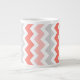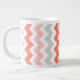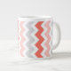 Elégante et moderne pêche rose orange, gris et blanc chevrons rétro zigzags bandes vintages tasse de café jumbo motif, entièrement personnalisable avec votre texte ou votre photo, créez une tasse de café vraiment unique pour votre prochain café.
