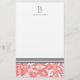 Jolie et élégante pêche rose orange, gris fusain et blanc chic vintage damassé à motif personnalisé monogrammed papeterie pour la mariée et le marié. Ajoutez votre nom ou votre initiale pour créer un papier à lettres mariage personnalisé unique.