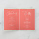 Programme de mariage d'art moderne recto verso. Modifiez ce programme de mariage avec votre nom, dates, libellé de la cérémonie, accompagnateurs de mariage et merci. Un programme simple mais élégant remplace simplement un exemple de texte par vos propres informations de mariage. Corail d'origine Art abstrait et design par www.mylittleedenweddings.com