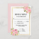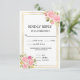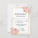 La belle carte RSVP est dotée d'un cadre doré avec des roses d'aquarelle de corail rose et des branches botaniques vert pâle. Cette version comprend des options de repas que vos invités peuvent choisir. Le côté inverse est un rose pâle coordonné avec un petit groupe de fleurs au centre.