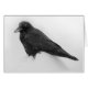 Corbeau dans la neige, présenté sur une carte de voeux.