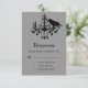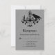 Un corbeau noir et un lustre en cristal décorent ce RSVP sur un arrière - plan en lin gris. Le dos est décoré plus loin avec un motif damassé d'araignée, ce qui lui donne un sentiment d'Halloween étrange. Il s'agit du RSVP de coordination pour le Raven and Spider Damask Grey Linen Faire-part de mariage. Il est montré sur le papier de base; cependant, je recommande le poids et la texture du papier de lin.