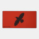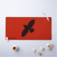 Une simple silhouette noire d'un Corbeau (Corvus corax) sur un arrière - plan rouge. L'image du corbeau a reçu un léger effet "rugueux" ou "usé". Ajoutez votre propre texte.