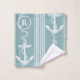 L'ancre marine avec une corde encerclant une lettre monogramme, flanquée de rayures, est parfaite pour la décoration de salle de bain d'inspiration océanique. Blancs et bleu turquoise neutre.