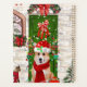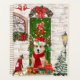 Corgi Dog assis à l'extérieur de la maison décorée avec la couronne de Noël, le sapin de Noël est une idée cadeau de Noël parfait pour les amoureux de les chiens.