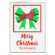 Gallois Corgi chien silhouette en avec le papier de Noël rouge abstrait motif et arc vert. Le message de Noël et Nouvel An à l'intérieur peut être changé à tout ce que vous voulez. Personnalisez avec le nom sous le Joyeux Noël ou juste ajouter heureux nouvelle année.