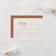 Cette carte de réponse de mariage comporte une police manuscrite audacieuse et un design minimaliste moderne. Son ton terre bohemien orange brûlé et beige en fait la carte RSVP parfaite pour votre suite de mariage contemporain ou industriel. *La plupart* des textes sont éditables et cette carte de réponse peut être utilisée pour n'importe quelle occasion. Utilisez facilement pour votre douche de mariée, douche bébé, fête de retraite, etc.