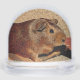 Stylized image with a cork board look of a smooth coated male Agouti Guinea Pig looking so cute on a brown and beige checkerboard blanket.